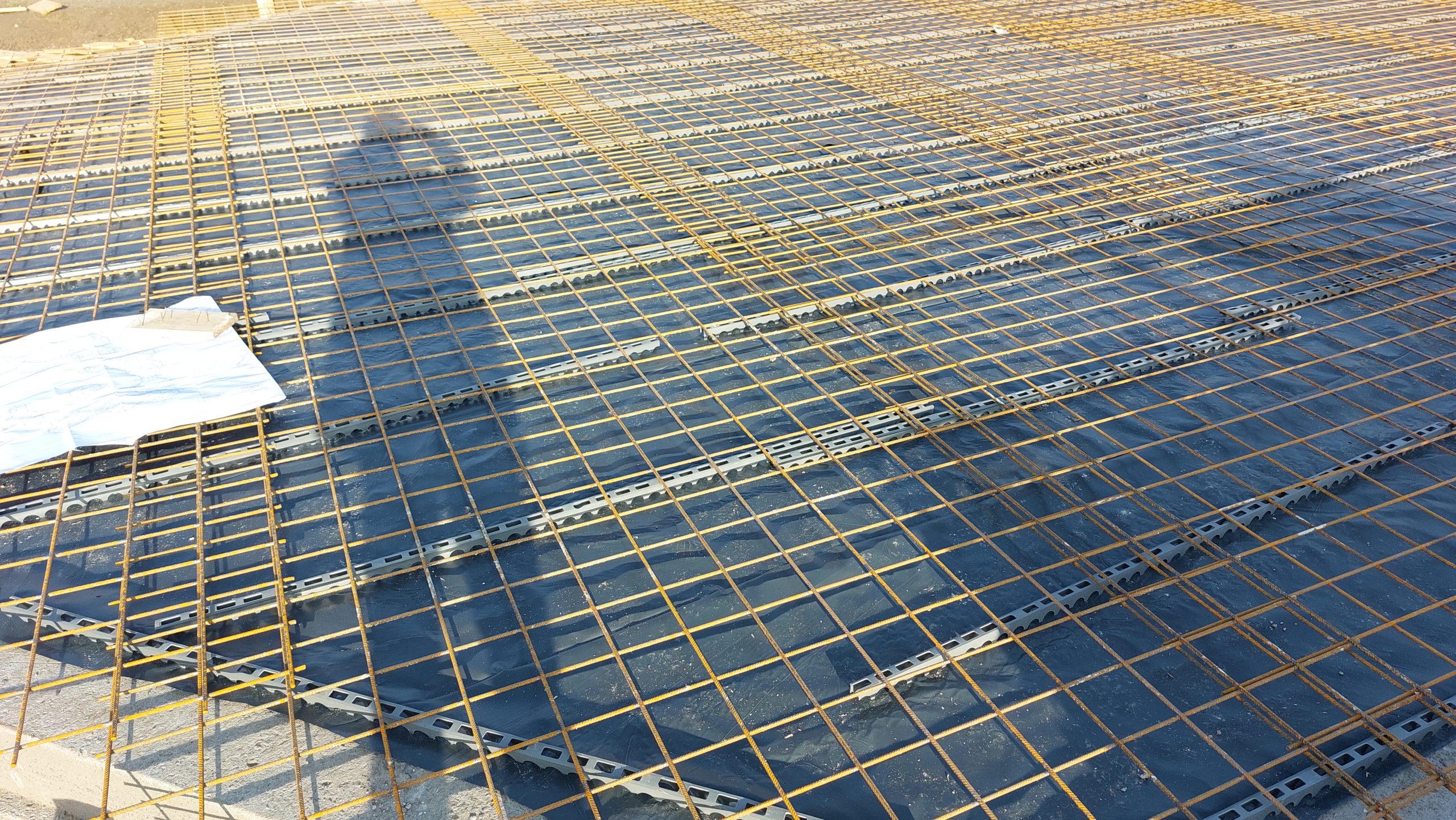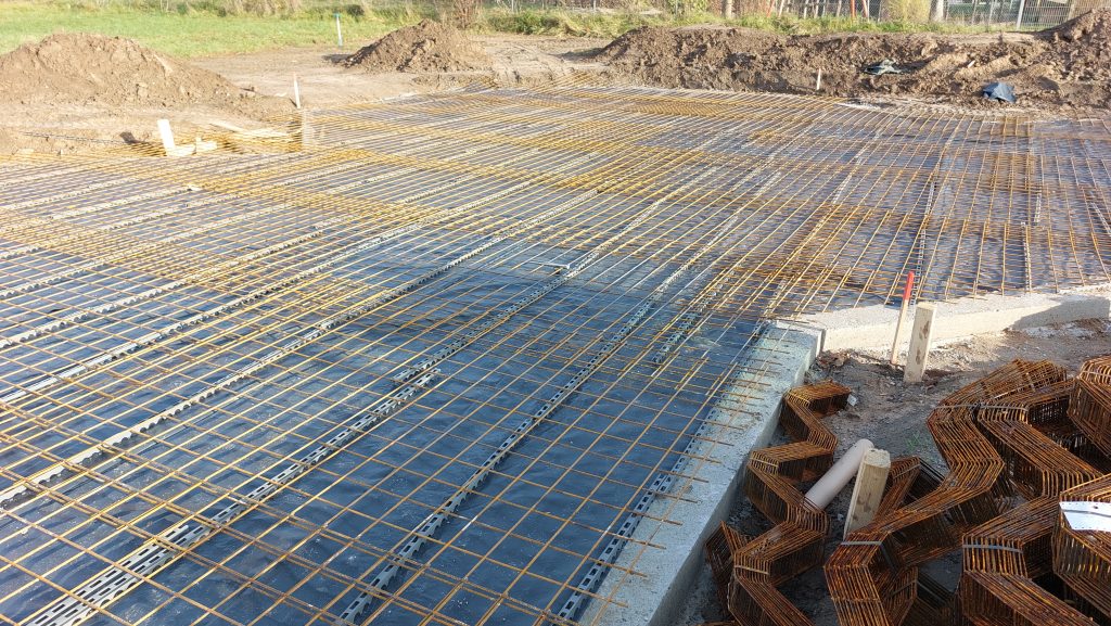 Auf der astroparc – Baustelle ist jetzt das letzte und schwerste Element, das in Sternen zur Energiegewinnung beiträgt, der Hauptdarsteller. Die Stahlmatten werden aufgebracht und geben später dem umgebenden Beton die Festigkeit, die notwendig ist, um die Aufbauten zu tragen. Wenn das Wetter im November weiter mitspielt, werden die Bodenplatten in den nächsten 3 Wochen fertig. Eine große Menge an Eisen wird hier im Beton verschwinden.