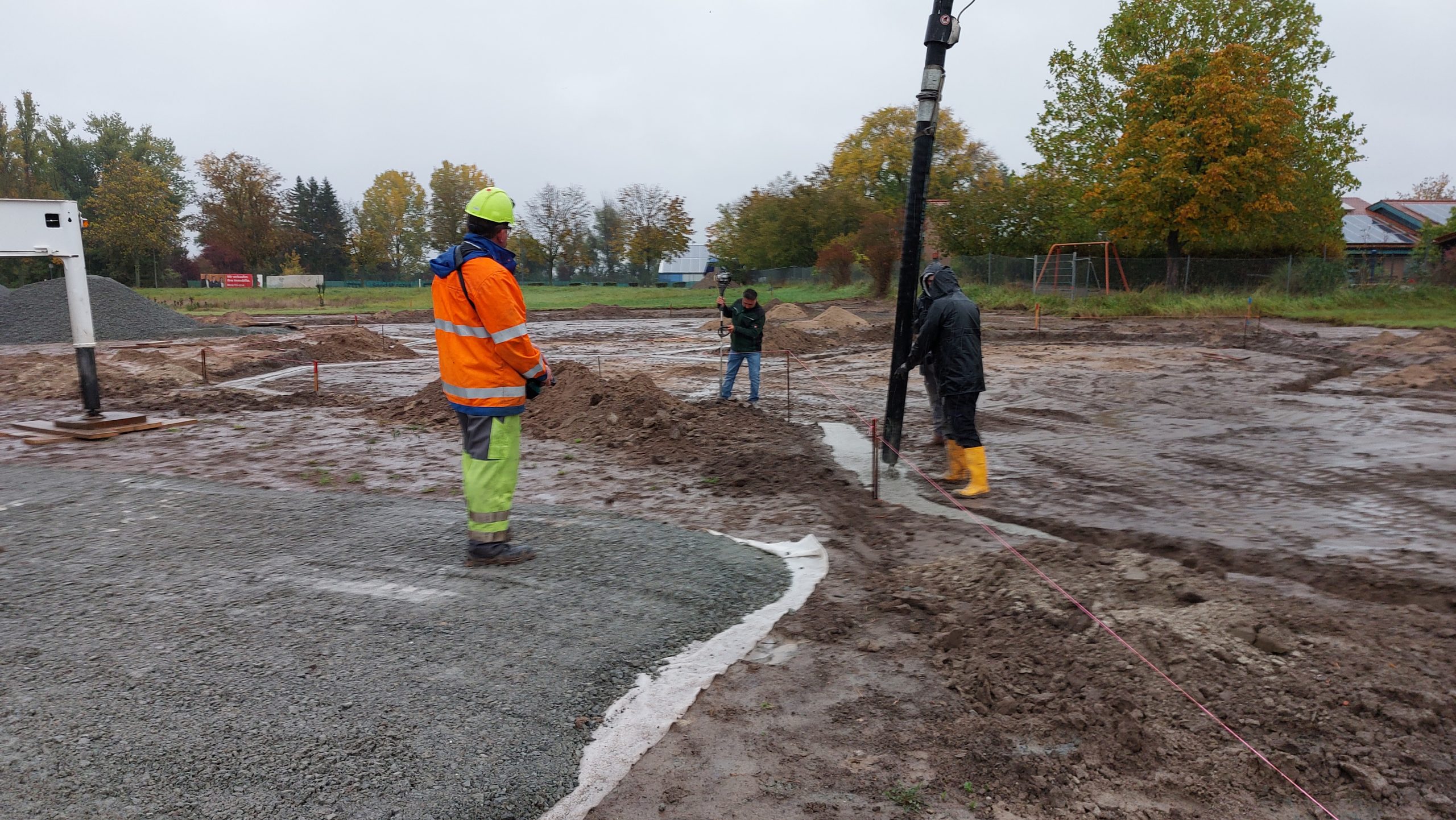 Die letzten Fundamente bei strömendem Regen